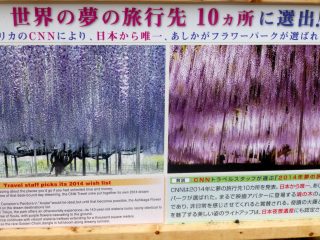 アメリカCNNによる「世界で行ってみたい旅行先10か所」に日本で唯一選ばれただけあって、これでもか、これでもかという位、たくさんのいろいろな種類の藤の花が見られました。
