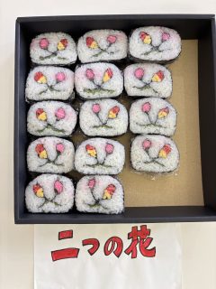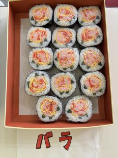 今年も、教室の生徒さんに5種類の房総太巻き寿司の試食品を作っていただき、受講生に振舞いました。