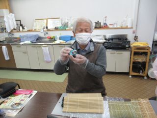 「いちはら市民大学」を受講され、太巻き寿司に興味を持たれた男性が入会されました。お孫さんがお正月に来るので、太巻き寿司を作ってあげて、ビックリさせたいと話しておられました。上手にできて、大満足でした (^-^)/