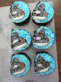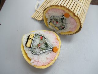 鴨川市―ワールドの「シャチ」の愛称「オルカ」の太巻き寿司の柄も、とてもいい感じにできました(^-^)v