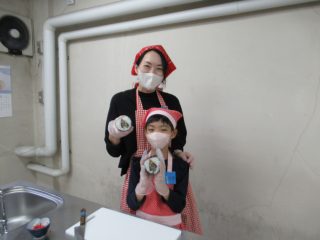 昨年参加した中学生もまた参加してくれました。親子で楽しそうに上手に巻きました