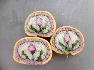 房総太巻きずし教室で「アンパンマン風」と「スズラン」がいい感じにできました!!